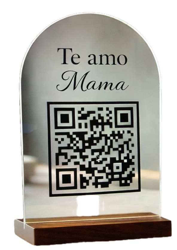 Cuadro en vidrio premium con código QR. Un regalo elegante y duradero que sorprenderá.